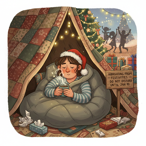 Remember, some animals hibernate during winter and they aren’t judged. So like a squirrel, bat or bear, grab some food, a blanket and ‘hibernate’ the festive season away.